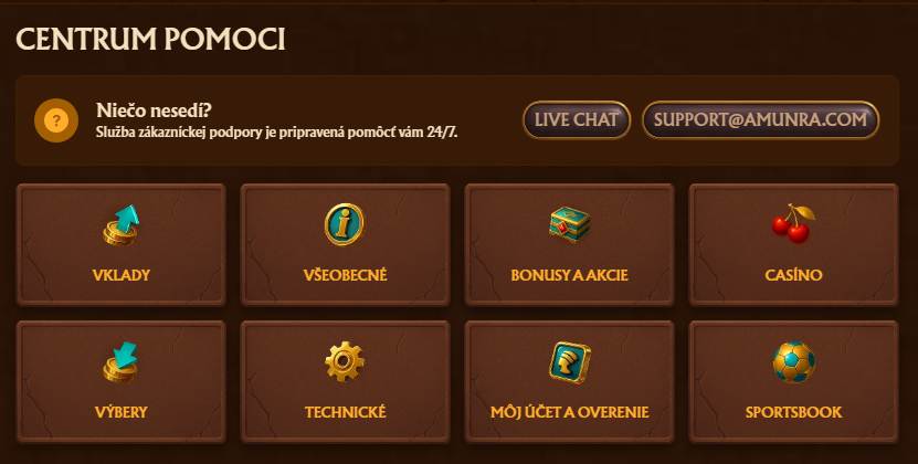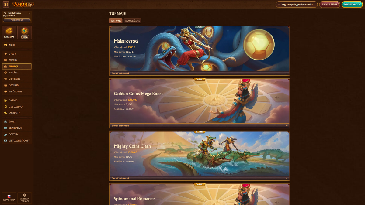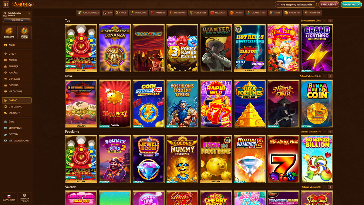 Casino AmunRa je medzinárodná online herná platforma, ktorá spája široký kasínový zážitok so športovým stávkovaním a pútavou témou inšpirovanou starovekým Egyptom. Stránky, spustené s víziou poskytovať bezpečné, zábavné a na hráčov zamerané hranie, ponúkajú širokú škálu hier od automatov po stoly s live dealermi a rad propagačných ponúk, ktoré oslovia nových aj vracajúcich sa používateľov.