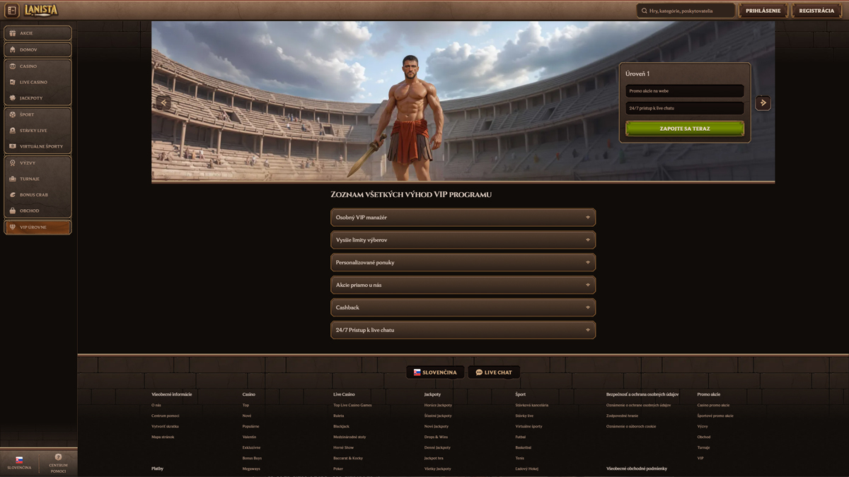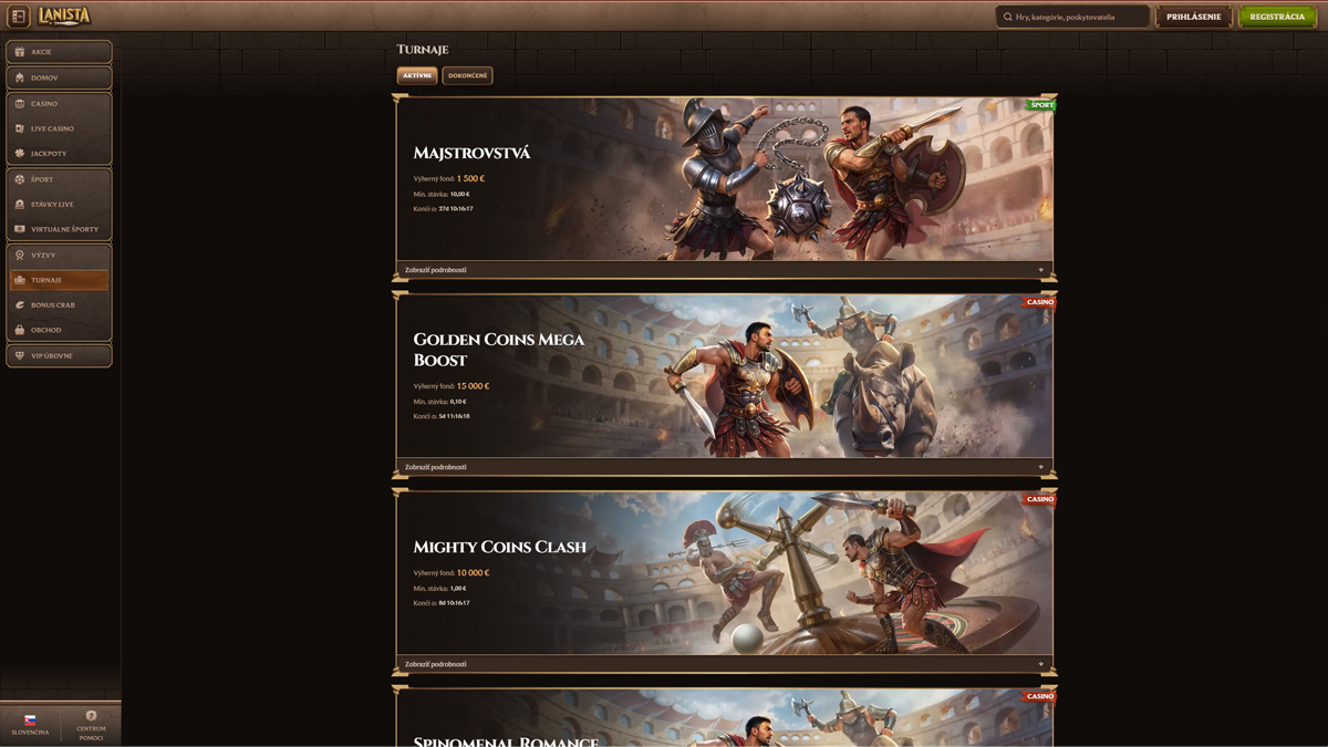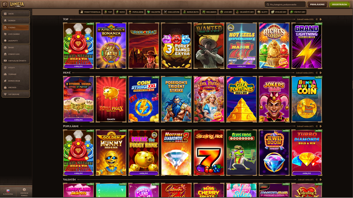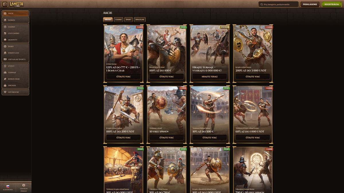 Casino Lanista, ktoré bolo spustené v novembri 2025 ako súčasť affiliate siete Partners Casa, sa prezentuje ako elegantná a moderná herná destinácia. Platforma kladie dôraz na špičkový dizajn a užívateľsky prívetivú navigáciu a vytvára vytříbený a intuitívny zážitok. Hráči môžu plynule prechádzať medzi automatmi, klasickými stolovými hrami, možnosťami live kasína a komplexnou športovou knihou. Lanista, fungujúci na základe licencie Anjouan, uprednostňuje bezpečnosť a spoľahlivosť, podporenú modernou infraštruktúrou a rýchlym načítavaním stránok. Vďaka ostrému vizuálnemu prevedeniu, konzistentnému výkonu a dobre štruktúrovanému rozvrhnutiu kasíno pohodlne vyhovie nováčikom a zároveň spĺňa očakávania skúsených hráčov.