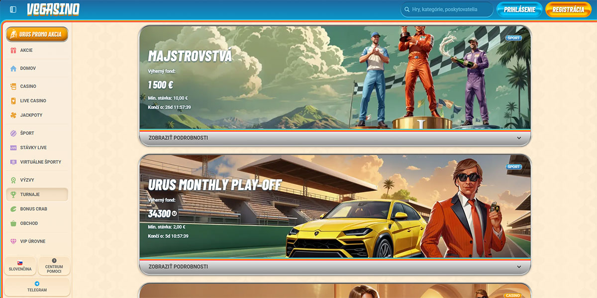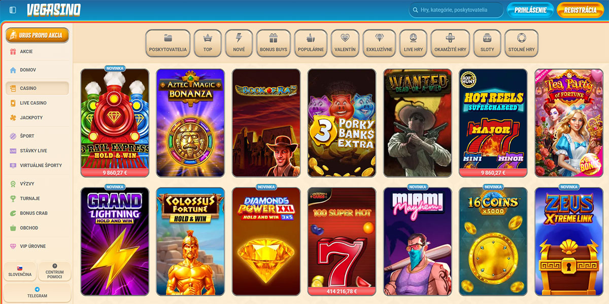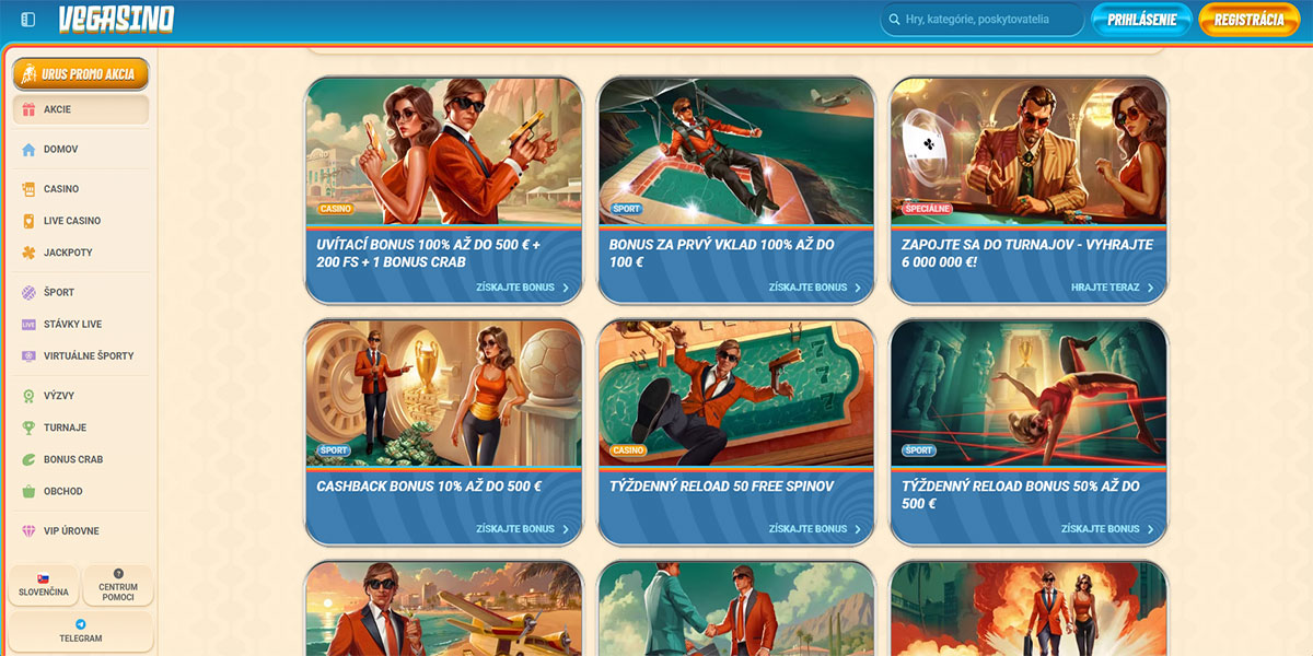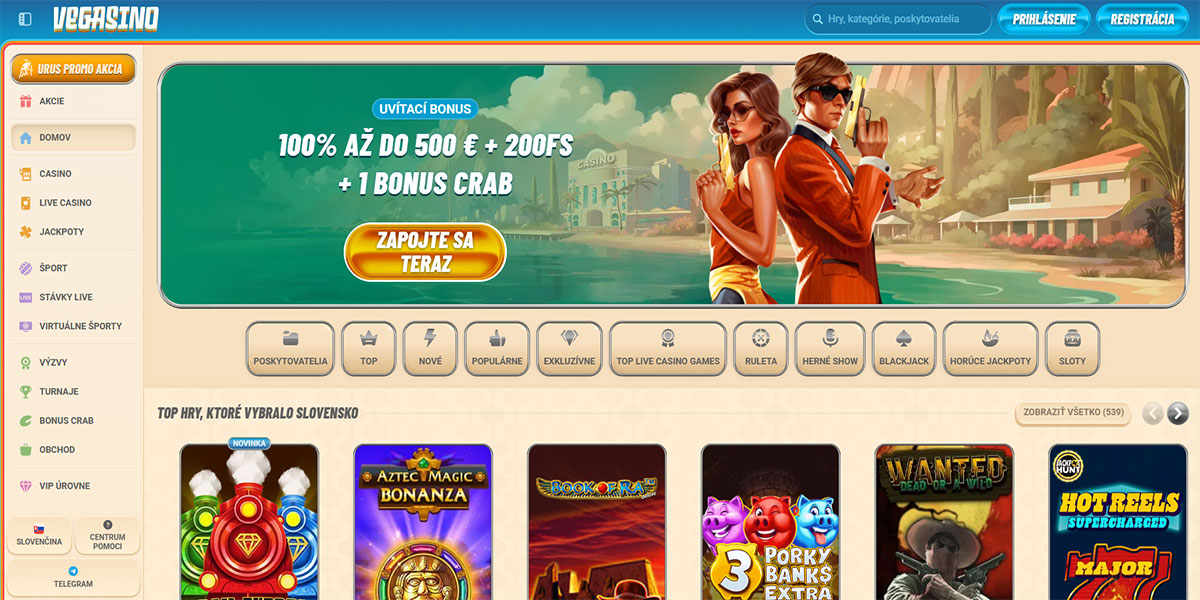 Casino Vegasino je moderná online kasínová a stávková platforma, ktorá bola spustená v roku 2024. Spája širokú škálu kasínových hier, sekciu s live dealermi, športové stávkovanie, výzvy a prebiehajúce akcie v jednom jednotnom rozhraní. Platforma kladie dôraz na bezproblémový herný zážitok s prehľadnou navigáciou, skvelými bonusovými ponukami a rastúcou knižnicou titulov od obľúbených poskytovateľov.