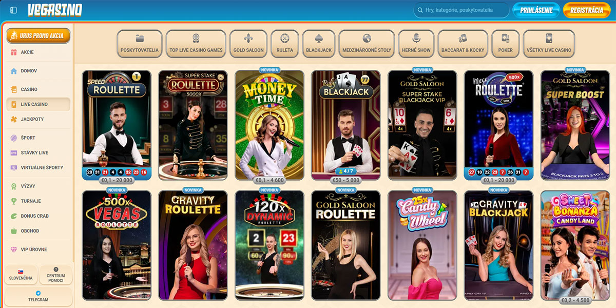 Live kasíno Live kasíno Kasínové hry v reálnom čase streamované z profesionálnych štúdií alebo kamenných kasín, s živými krupiérmi a interaktívnymi stolovými hrami.