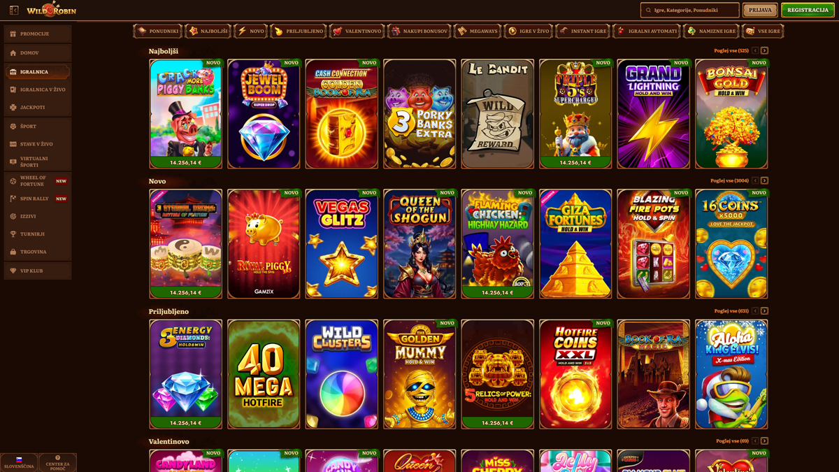 Casino WildRobin ponúka energické a pohlcujúce herné prostredie navrhnuté tak, aby oslovilo príležitostných hráčov aj skúsených nadšencov. Platforma sa pýši rozmanitým portfóliom zábavy, zahŕňajúcim klasické aj moderné automaty, obľúbené stolové hry a interaktívne zážitky so živými krupiérmi. Hráči môžu preskúmať všetko od rýchlych video automatov až po zručnostné kartové hry a niekoľko variantov rulety. Všetky tituly dodávajú známi vývojári softvéru, čo zaručuje spoľahlivé hranie, vyleštenú grafiku a konzistentný výkon naprieč zariadeniami. So svojím širokým výberom hier a zameraním na kvalitu predstavuje WildRobin Casino všestrannú destináciu pre pútavé a príjemné online herné sedenia.